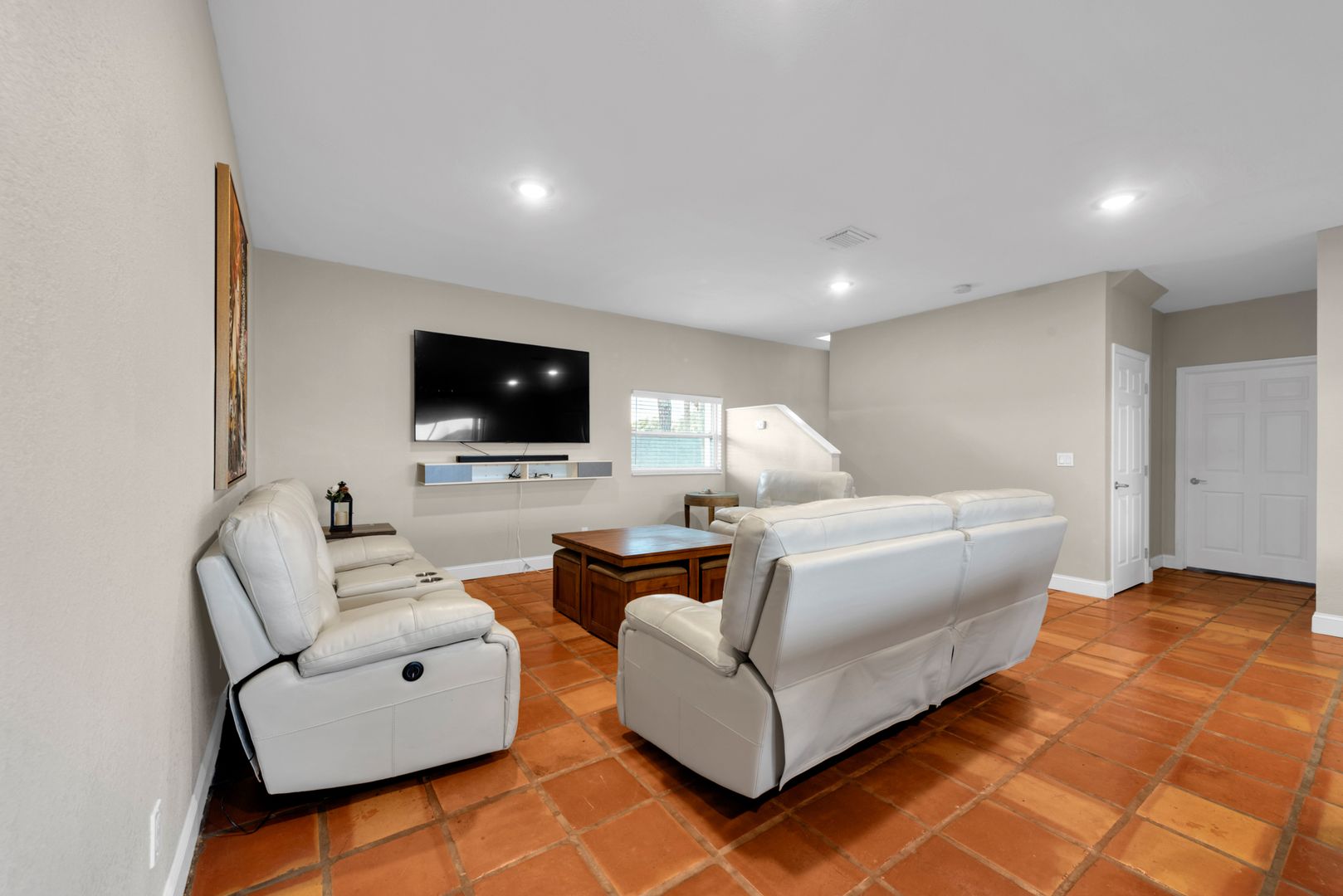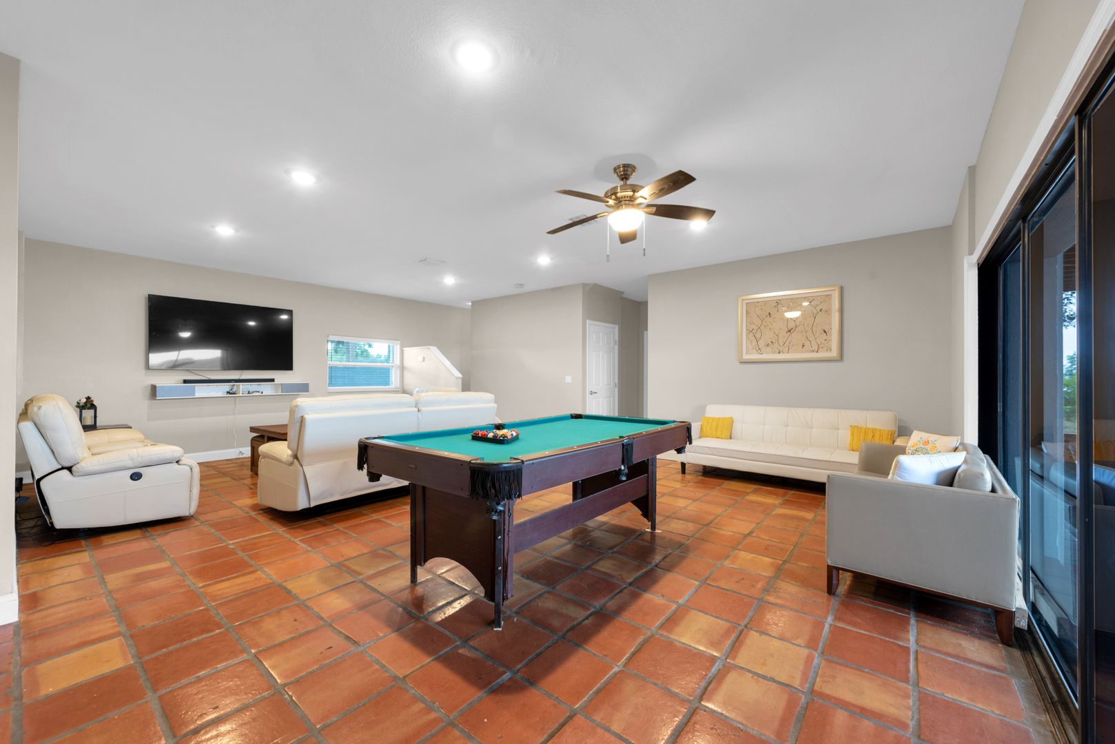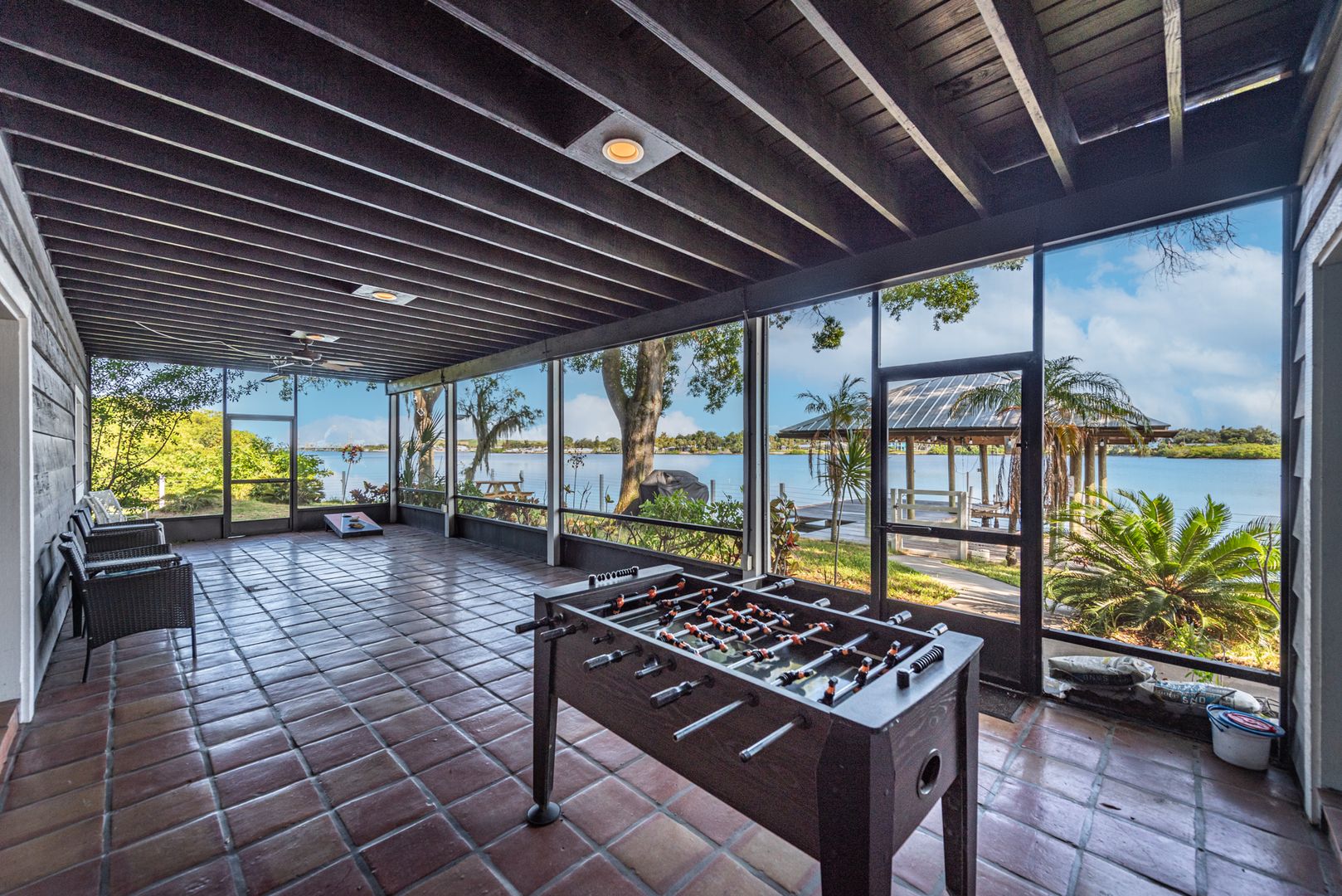 The owner’s suite is a sanctuary with an ensuite bathroom featuring granite dual vanity sinks, a custom tile shower, a separate soaking tub, and an oversized walk-in closet with custom shelving. Bedrooms 2 and 3 are thoughtfully located away from the master for privacy, with a full bath that includes a granite countertop vanity and a custom tile walk-in glass shower. The lower level clad in Saltillo tile offers a large family room that opens to another screened-in porch and includes the 4th bedroom guest suite with an adjoining spacious room and a nearby full bath. Storage is plentiful with two storage rooms (one air-conditioned) adjacent to the garage. Features galore: Gas cooking, Smart light switches, Double-hung hurricane windows and doors, Whole-house water filtration system, Tankless gas hot water heater, Dual AC units, 2-inch wood blinds on all windows, and LED lighting throughout. This furnished rental offers the ultimate in waterfront living, combining modern amenities with a stunning natural setting.