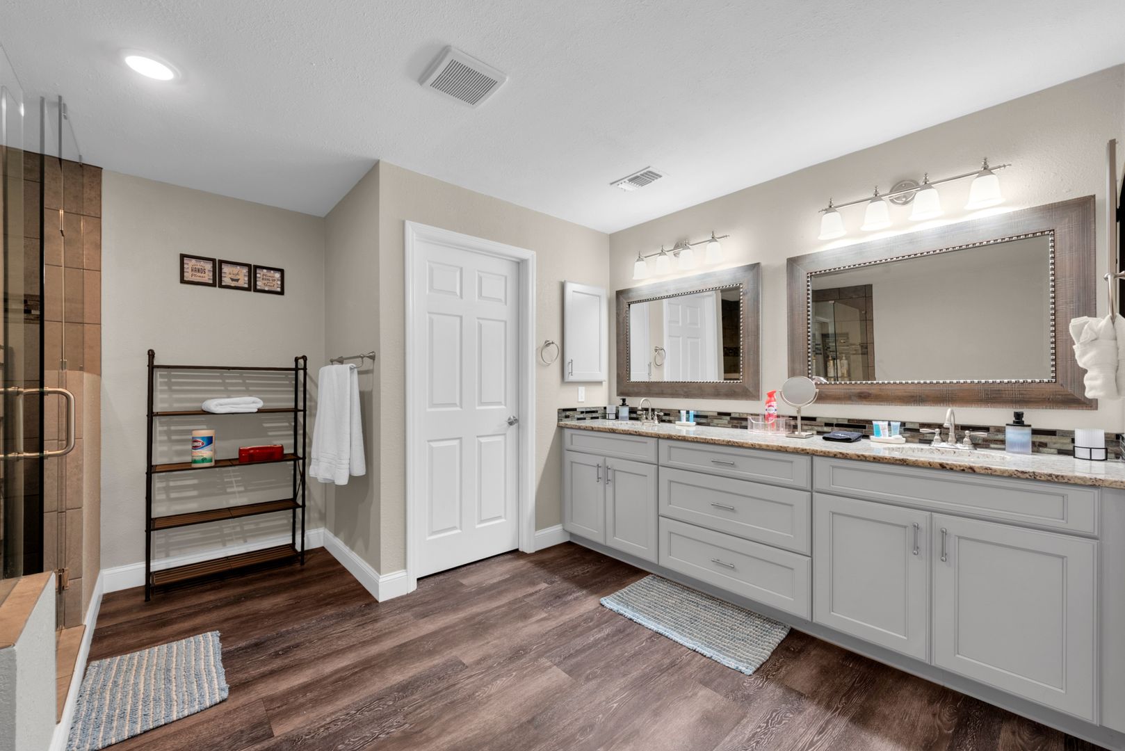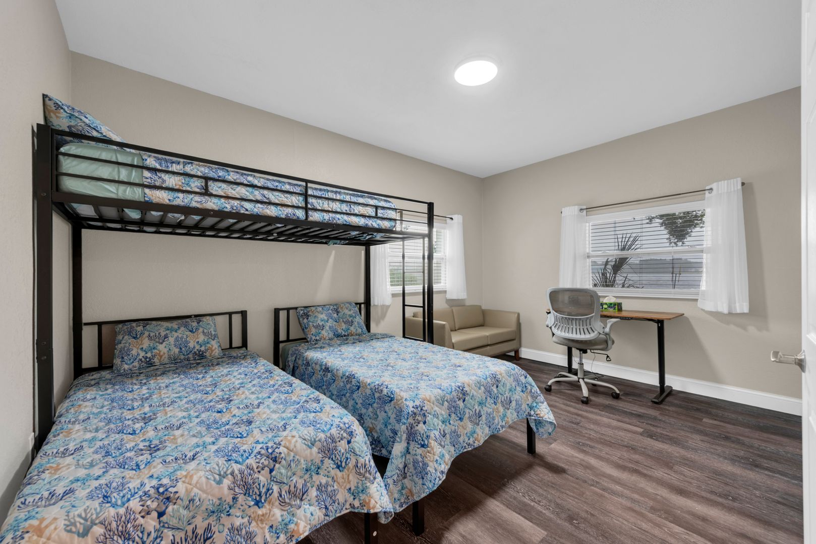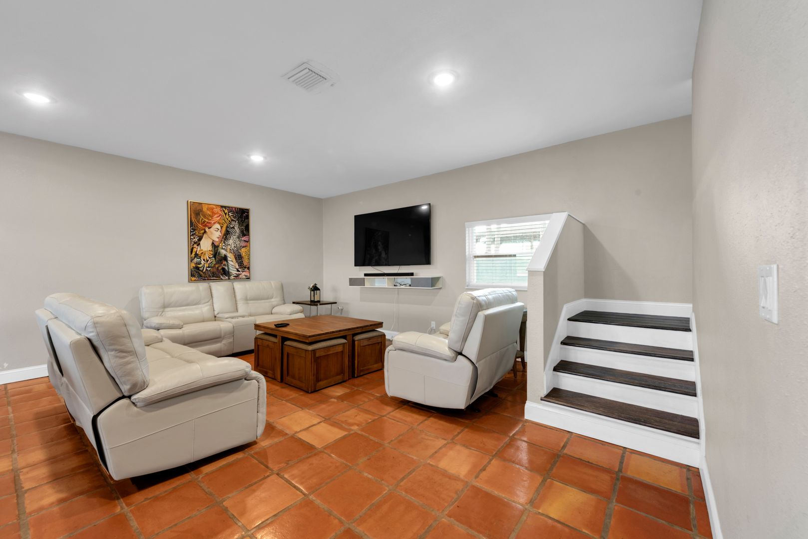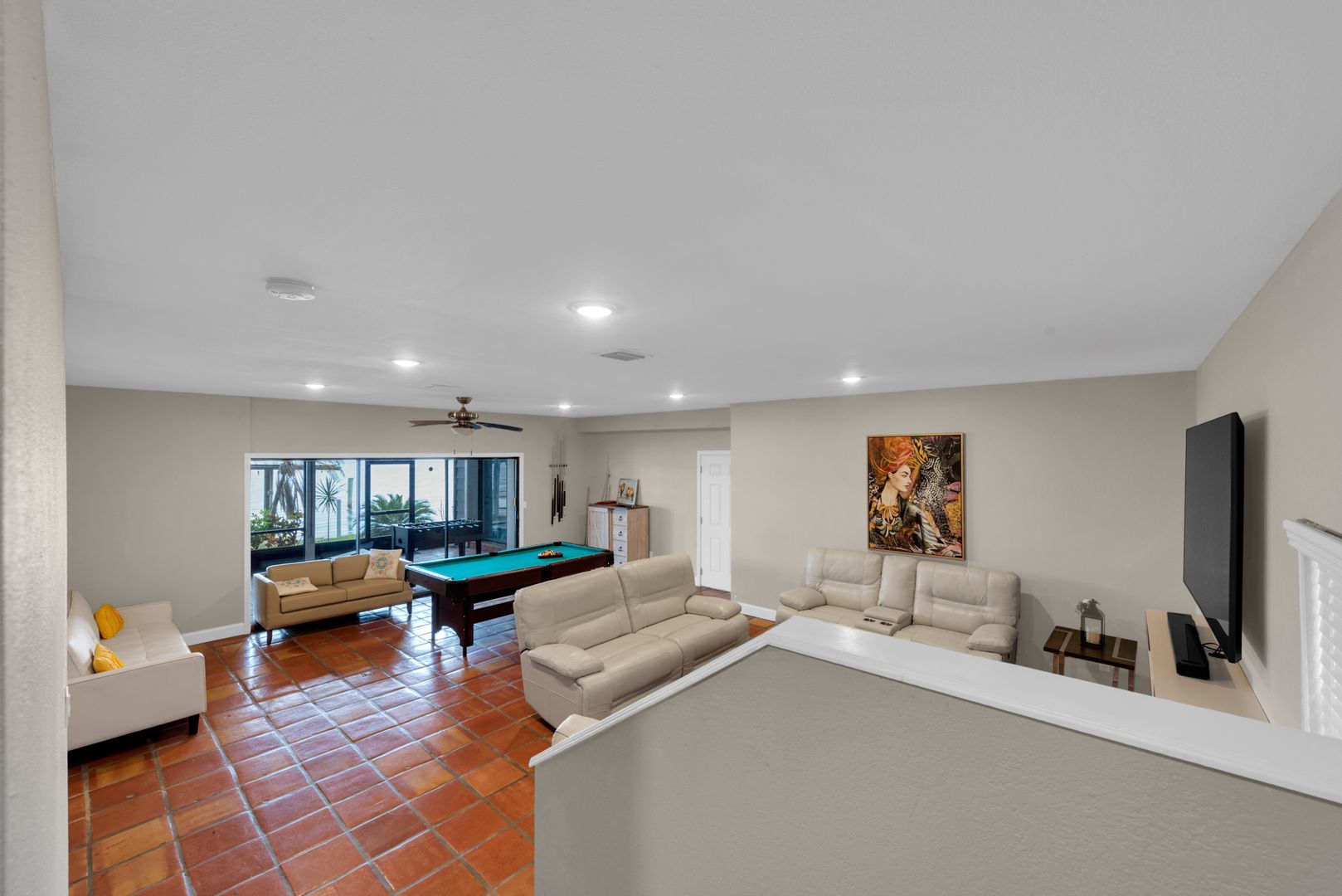 The owner’s suite is a sanctuary with an ensuite bathroom featuring granite dual vanity sinks, a custom tile shower, a separate soaking tub, and an oversized walk-in closet with custom shelving. Bedrooms 2 and 3 are thoughtfully located away from the master for privacy, with a full bath that includes a granite countertop vanity and a custom tile walk-in glass shower. The lower level clad in Saltillo tile offers a large family room that opens to another screened-in porch and includes the 4th bedroom guest suite with an adjoining spacious room and a nearby full bath. Storage is plentiful with two storage rooms (one air-conditioned) adjacent to the garage. Features galore: Gas cooking, Smart light switches, Double-hung hurricane windows and doors, Whole-house water filtration system, Tankless gas hot water heater, Dual AC units, 2-inch wood blinds on all windows, and LED lighting throughout. This furnished rental offers the ultimate in waterfront living, combining modern amenities with a stunning natural setting.