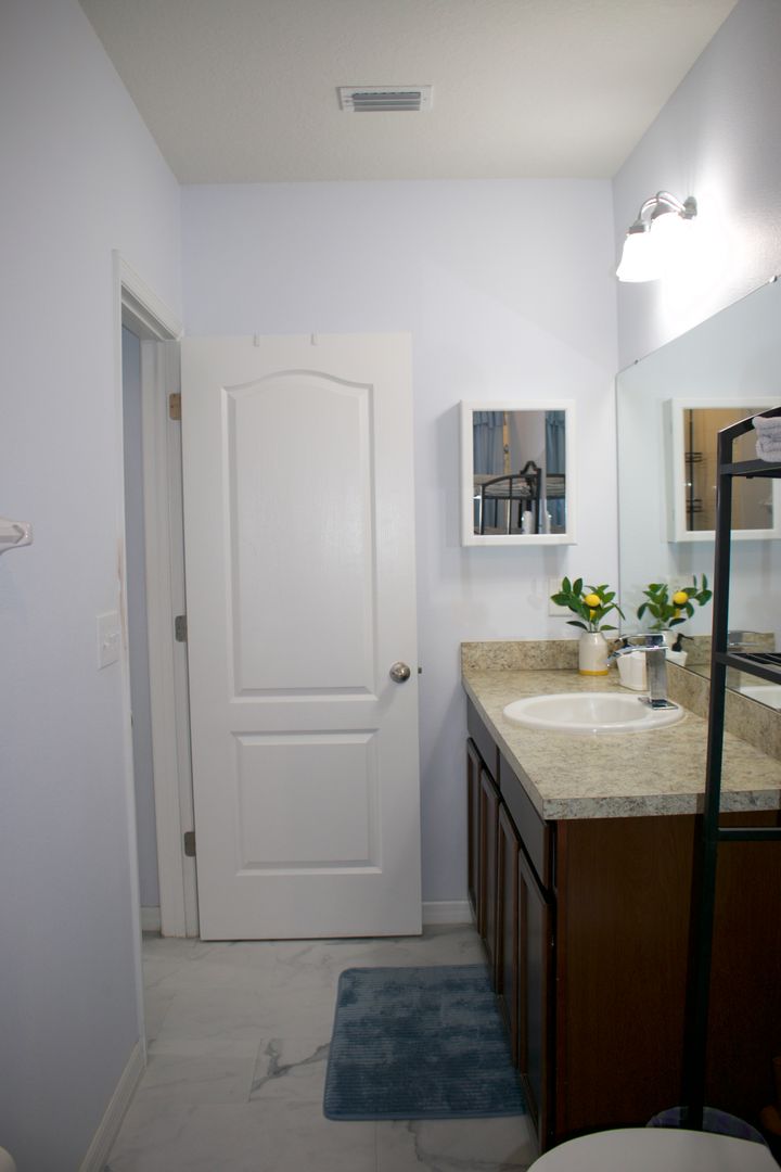 complete with a tub/shower combination. Step outside to your extended screened patio—perfect for relaxing while enjoying peaceful pond and conservation area views. This home combines style, comfort and tranquility. Contact us today to schedule your private showing!
