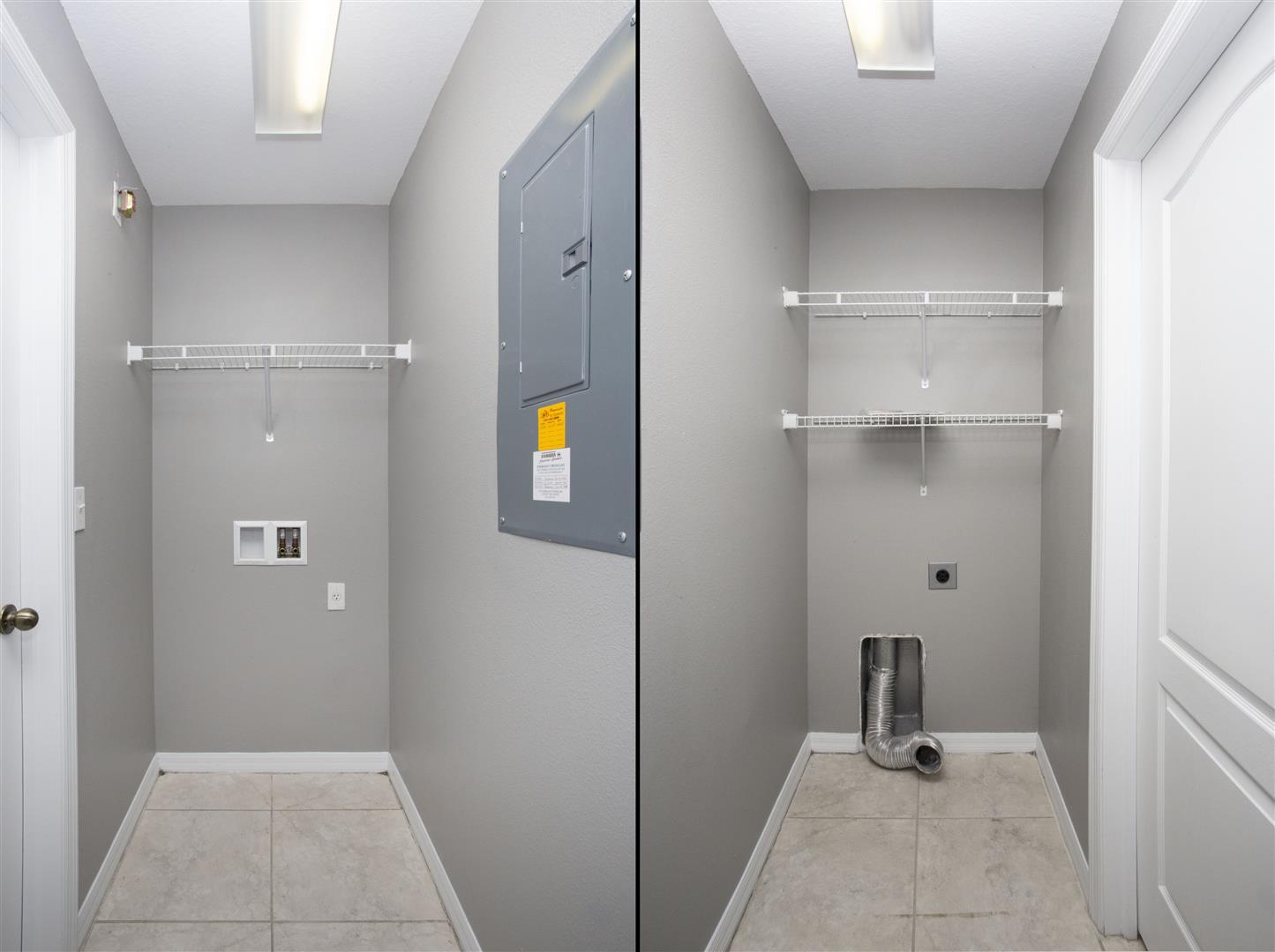 Entering from the garage, you’ll find built-in storage shelving (perfect for a drop zone), leading into a hallway with a half bath, laundry area, and an additional flex space—perfect for a small desk, shoe station, toy storage, or organizational nook.