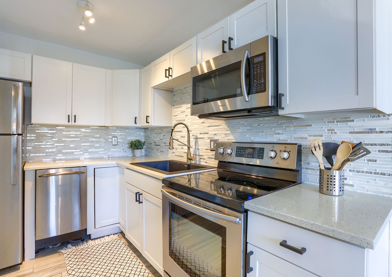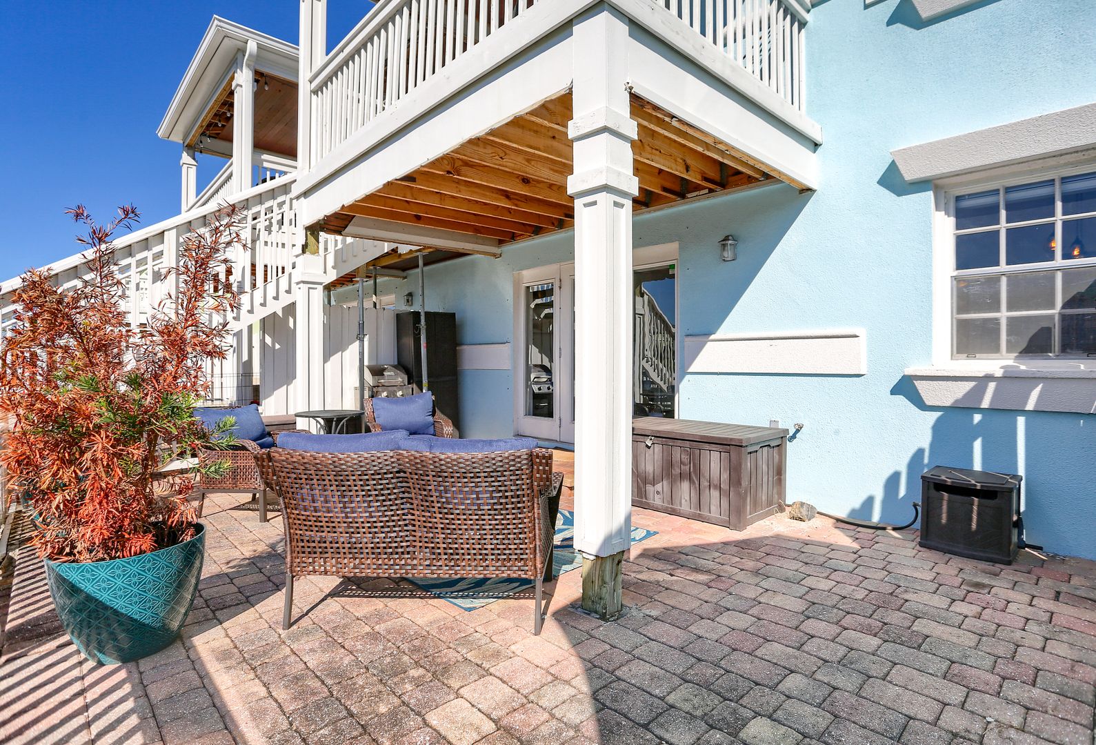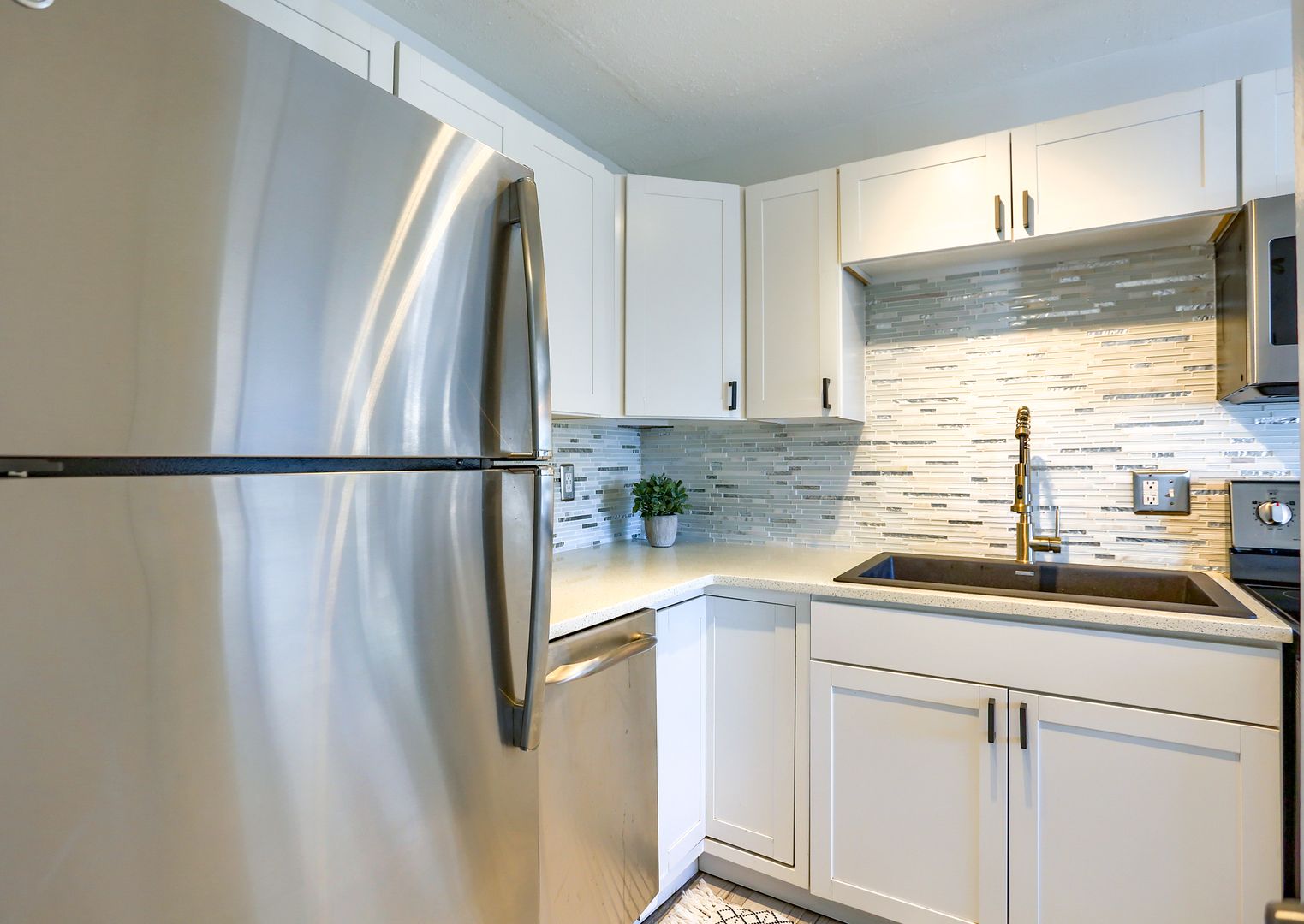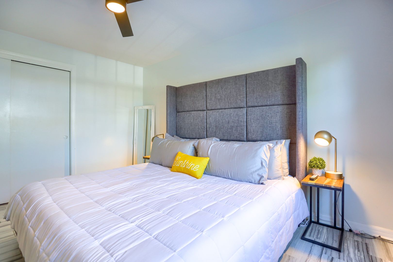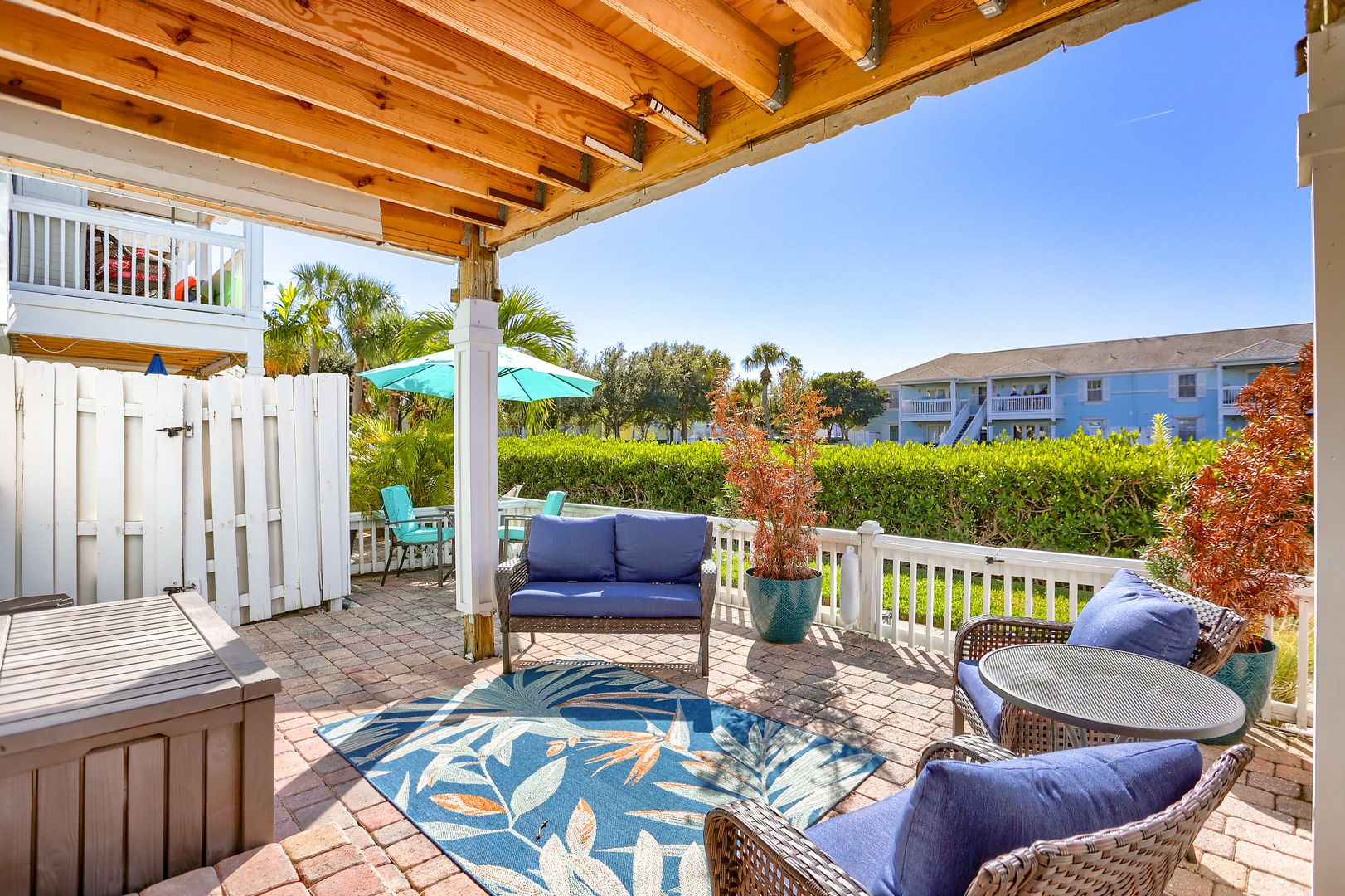 Your waterfront rental retreat awaits with a tastefully decorated interior featuring a primary bedroom with a king size bed, living area with a pull-out bed, updated kitchen, and bathroom, plenty of closet space, and a private patio. This unit comes fully furnished with linens, cookware, dishes, furniture, and all the comforts of home. Features include a newer AC, tile flooring throughout, quartz counters, shaker style cabinets, updated bathroom fixtures, ceiling fans, and a light modern feel.
