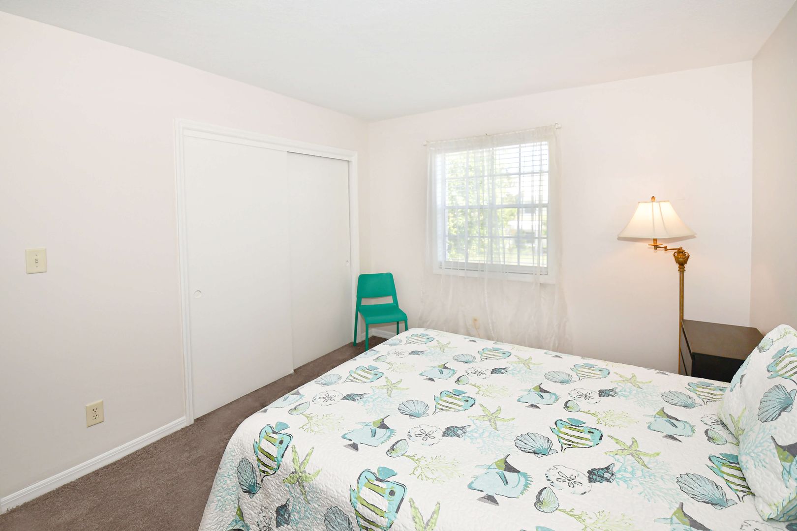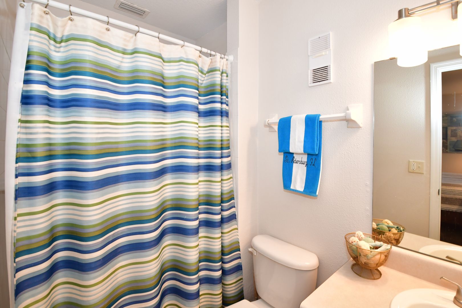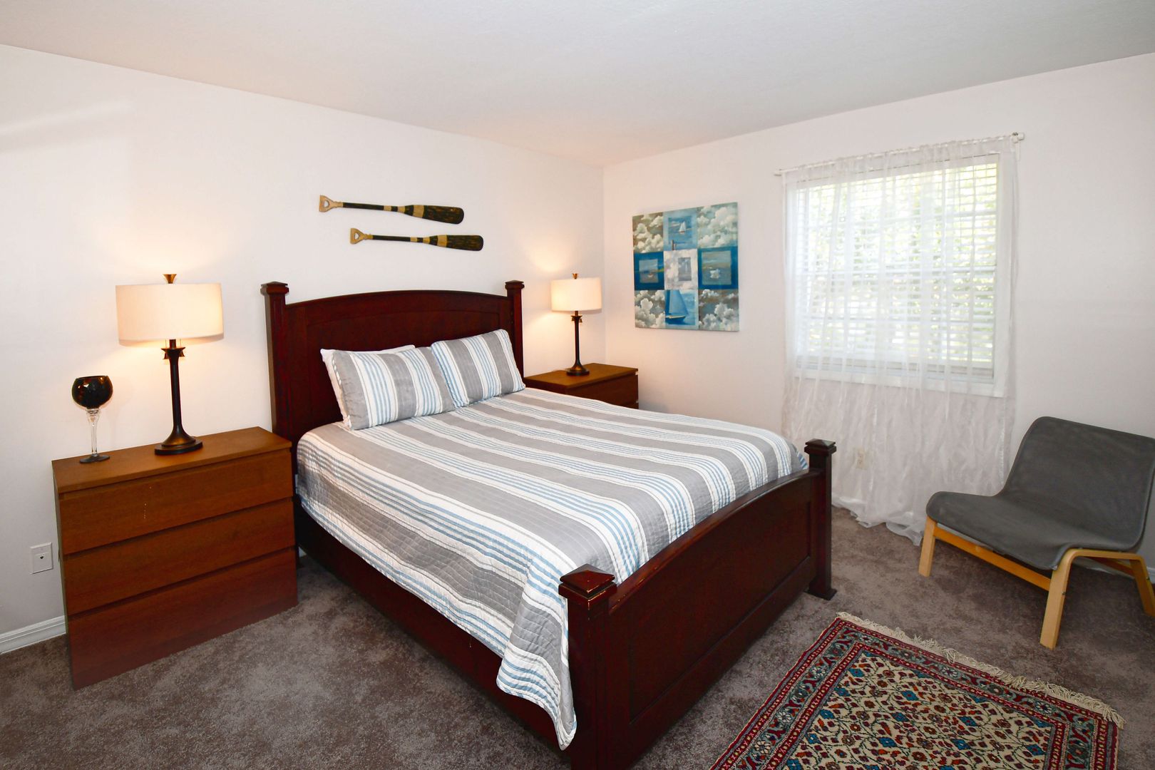 The primary bedroom comfortably fits a king or queen bed, includes two closets, and offers direct access to the en-suite bathroom. The guest bedroom also accommodates a king or queen bed and provides two additional closets. Just outside the guest bedroom is a second full bathroom. Three more closets in the hallway and entryway provide exceptional storage throughout the unit.