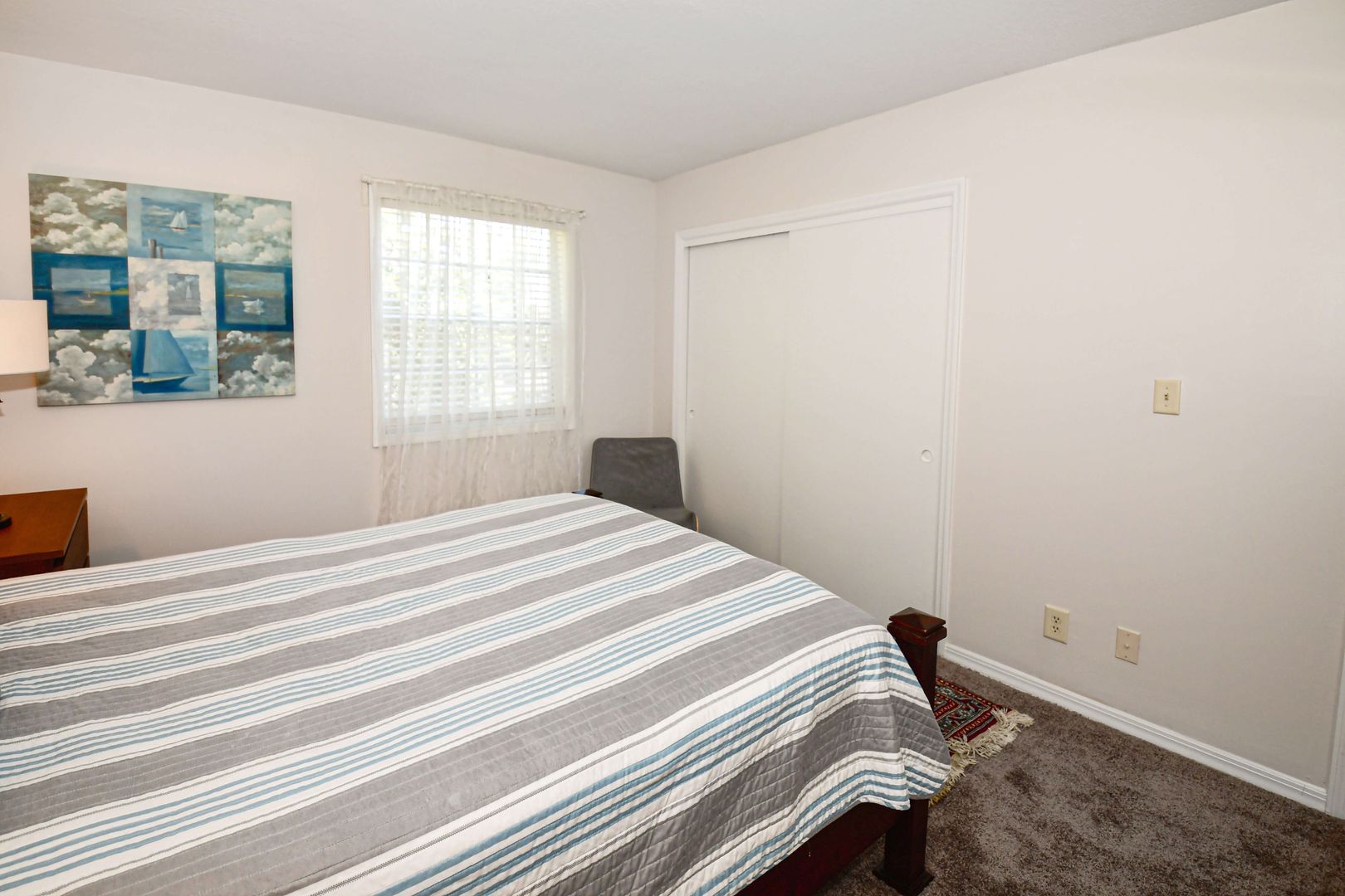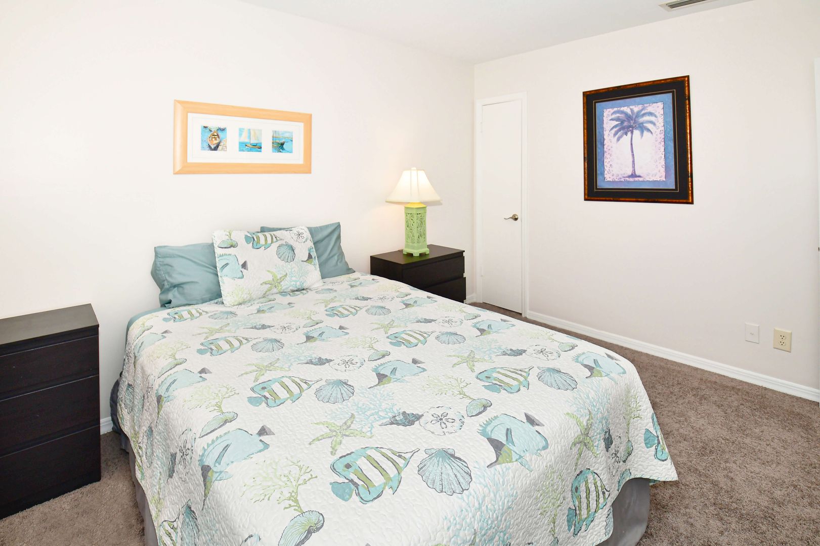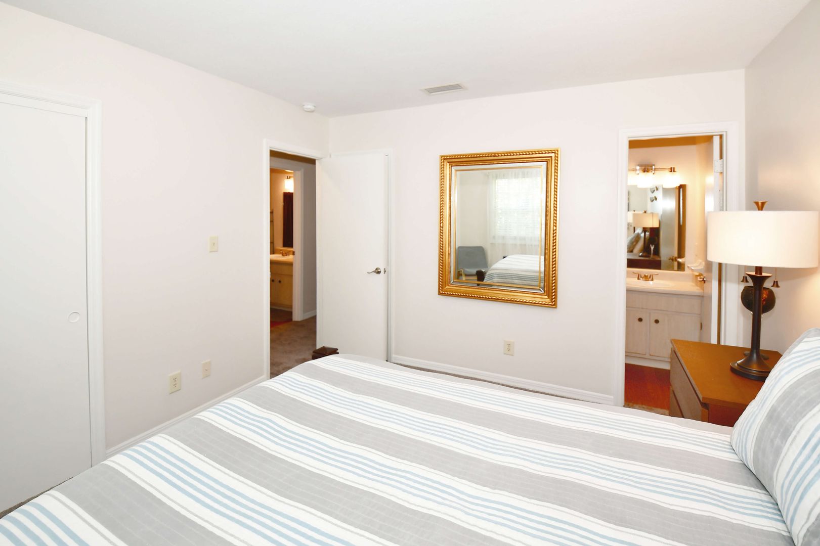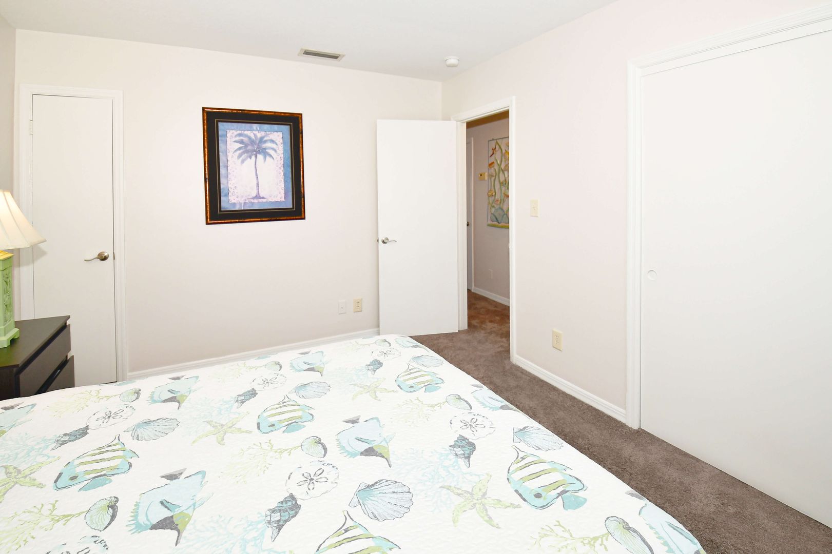 The primary bedroom comfortably fits a king or queen bed, includes two closets, and offers direct access to the en-suite bathroom. The guest bedroom also accommodates a king or queen bed and provides two additional closets. Just outside the guest bedroom is a second full bathroom. Three more closets in the hallway and entryway provide exceptional storage throughout the unit.