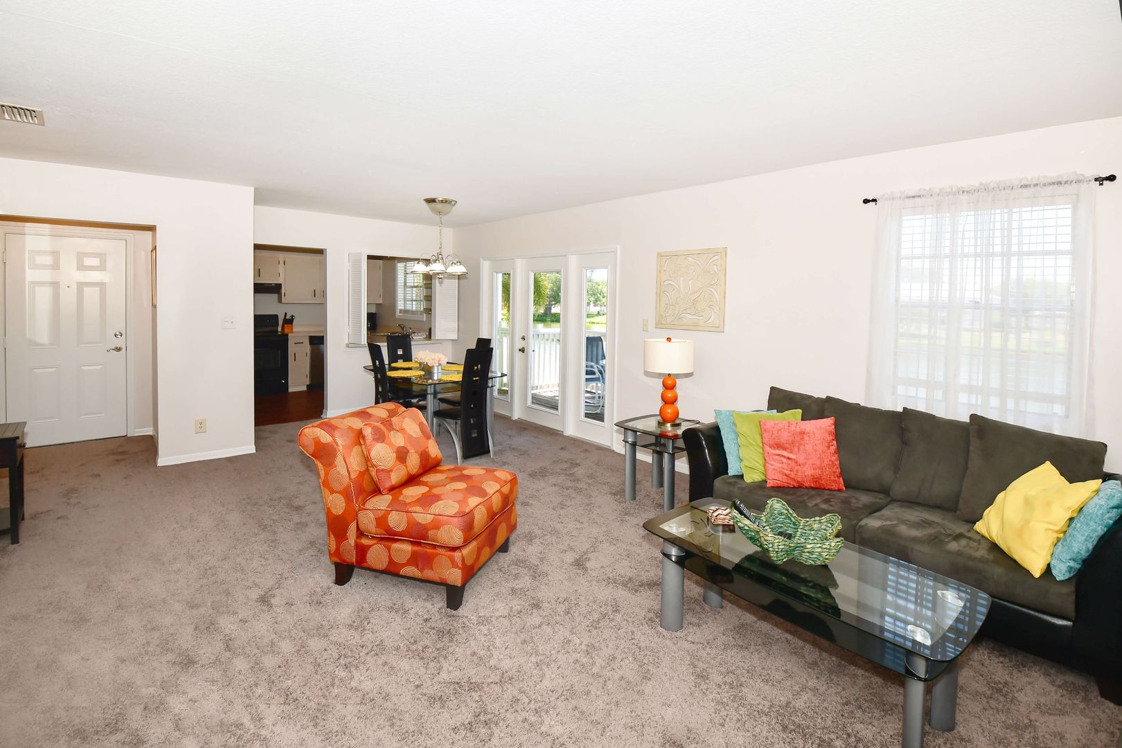 Enjoy stunning lake views from your private covered balcony, with convenient stair access to the common area—perfect for enjoying the outdoors. Inside, the unit features fresh paint, updated carpet, and an open-concept layout ideal for comfortable living and entertaining. The spacious kitchen offers abundant countertop space, ample cabinet and drawer storage, a pantry, and a breakfast bar overlooking the combined living and dining areas.
