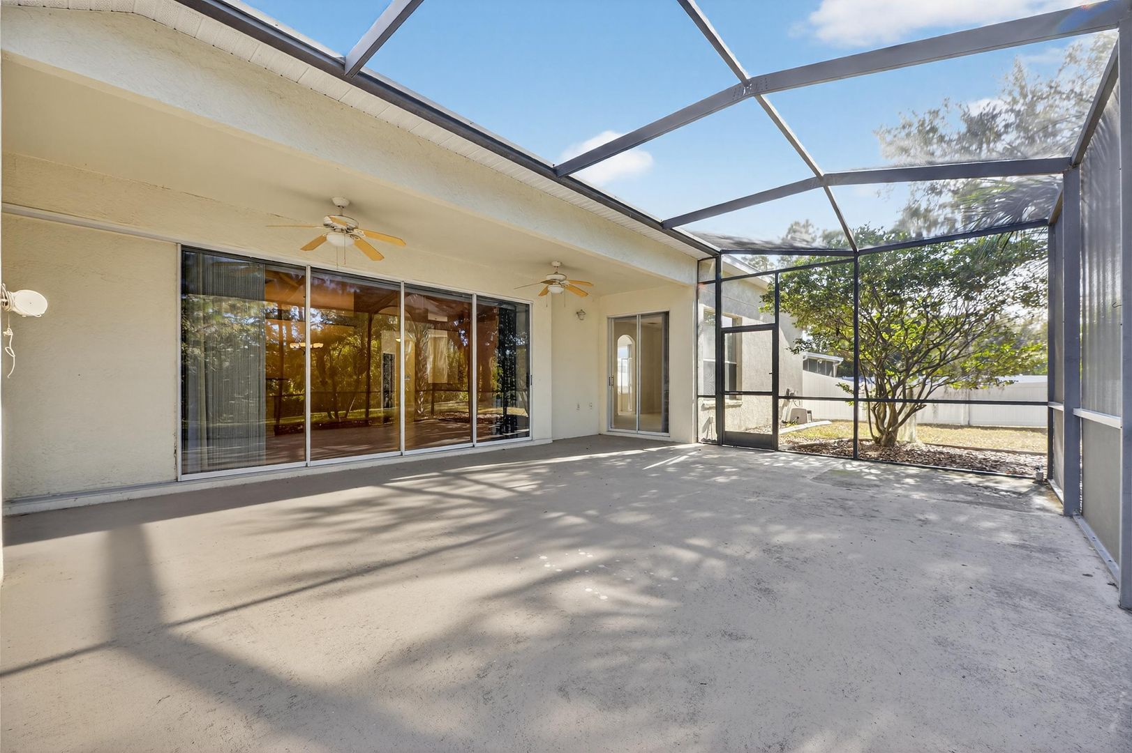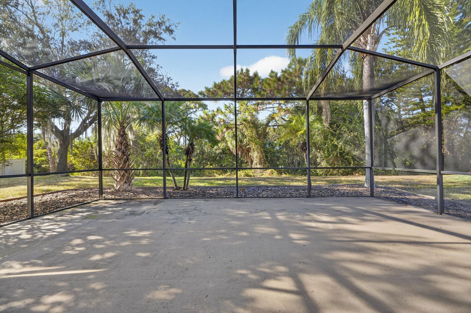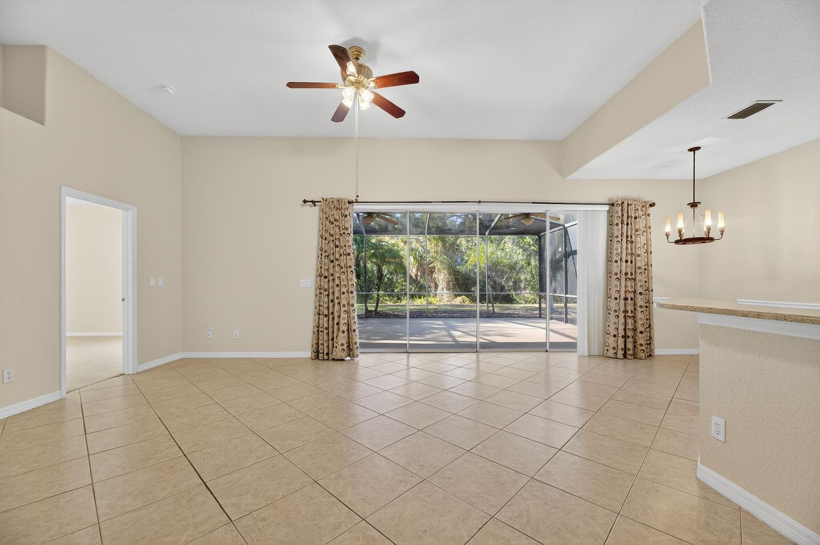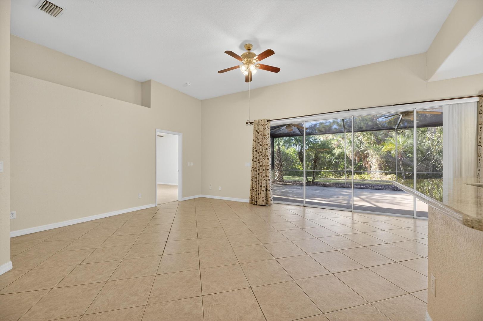 Step outside through the sliding glass doors to your oversized screened-in lanai, where you’ll enjoy peaceful mornings overlooking the conservation area and protected wildlife — a private and serene backyard escape.