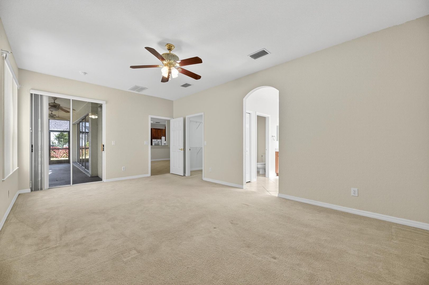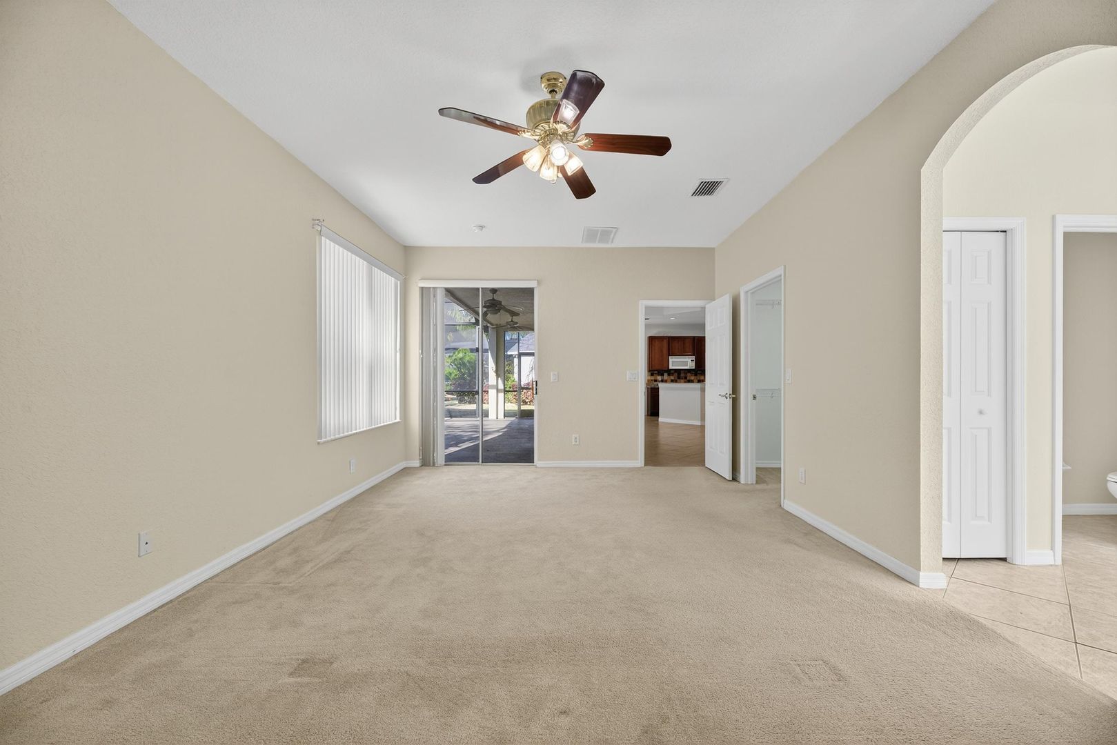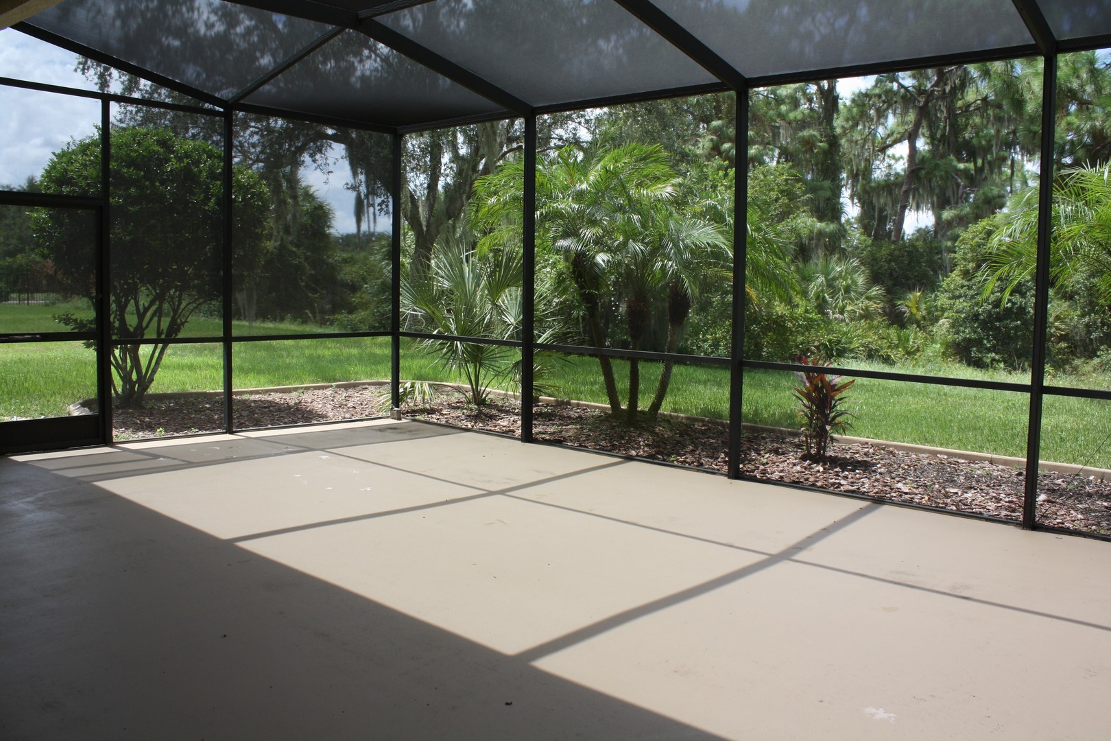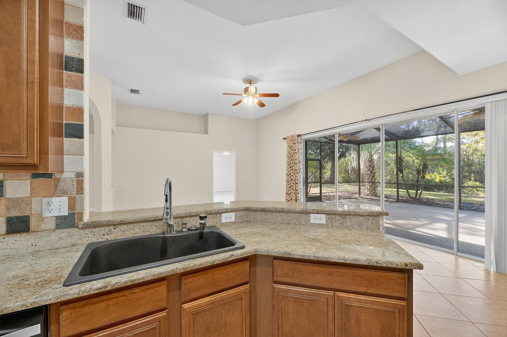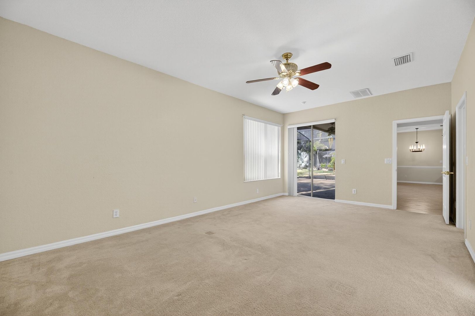 Step outside through the sliding glass doors to your oversized screened-in lanai, where you’ll enjoy peaceful mornings overlooking the conservation area and protected wildlife — a private and serene backyard escape.