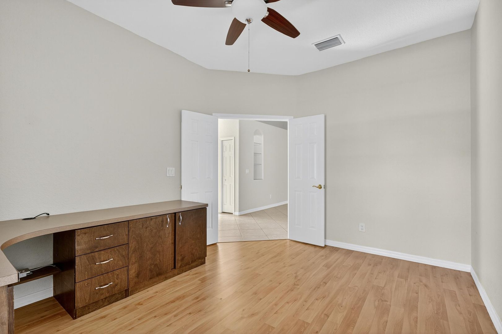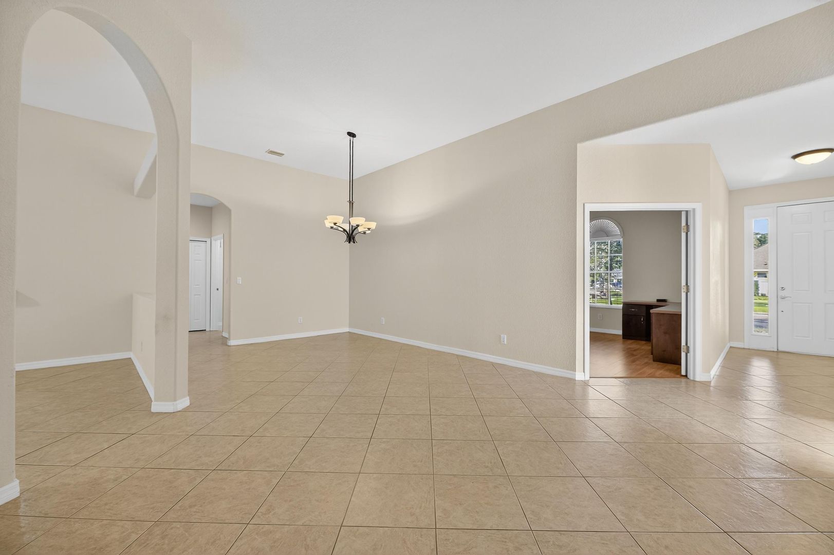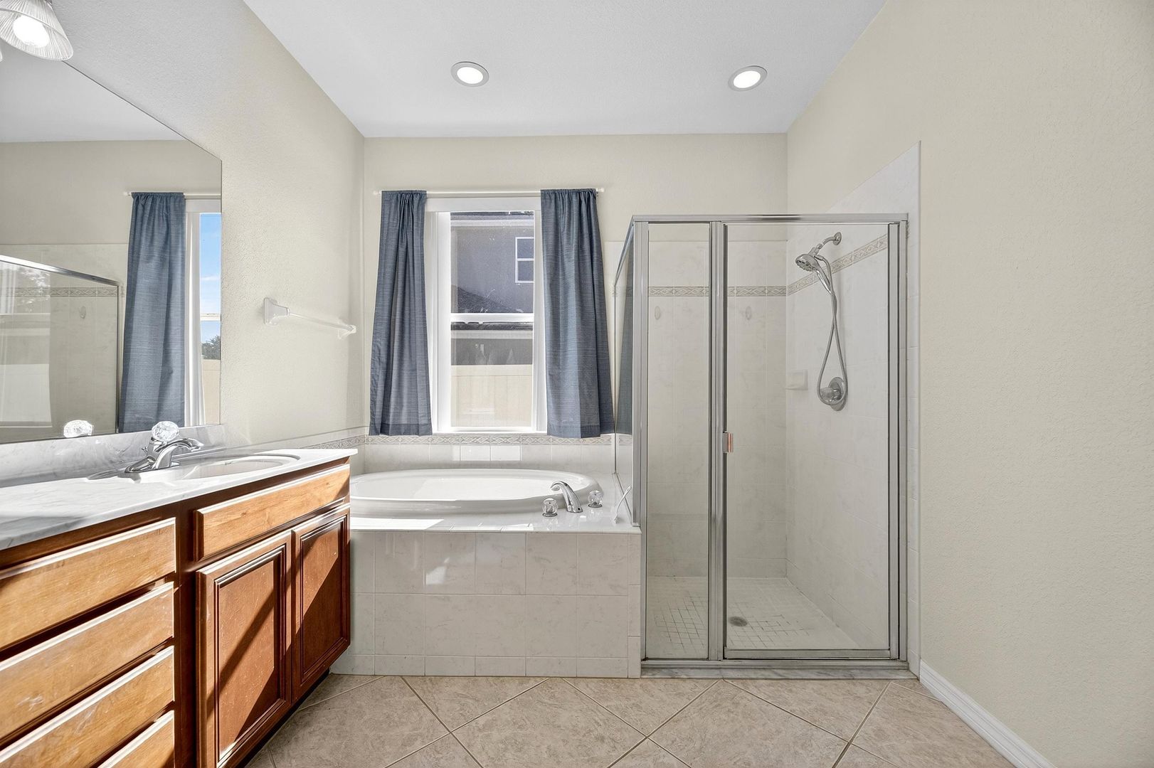 The kitchen boasts granite countertops, modern finishes, and ample cabinet space. French doors lead into the den/office, ideal for working from home or a quiet retreat. The primary suite includes a garden tub and separate shower, providing a true spa-like experience.