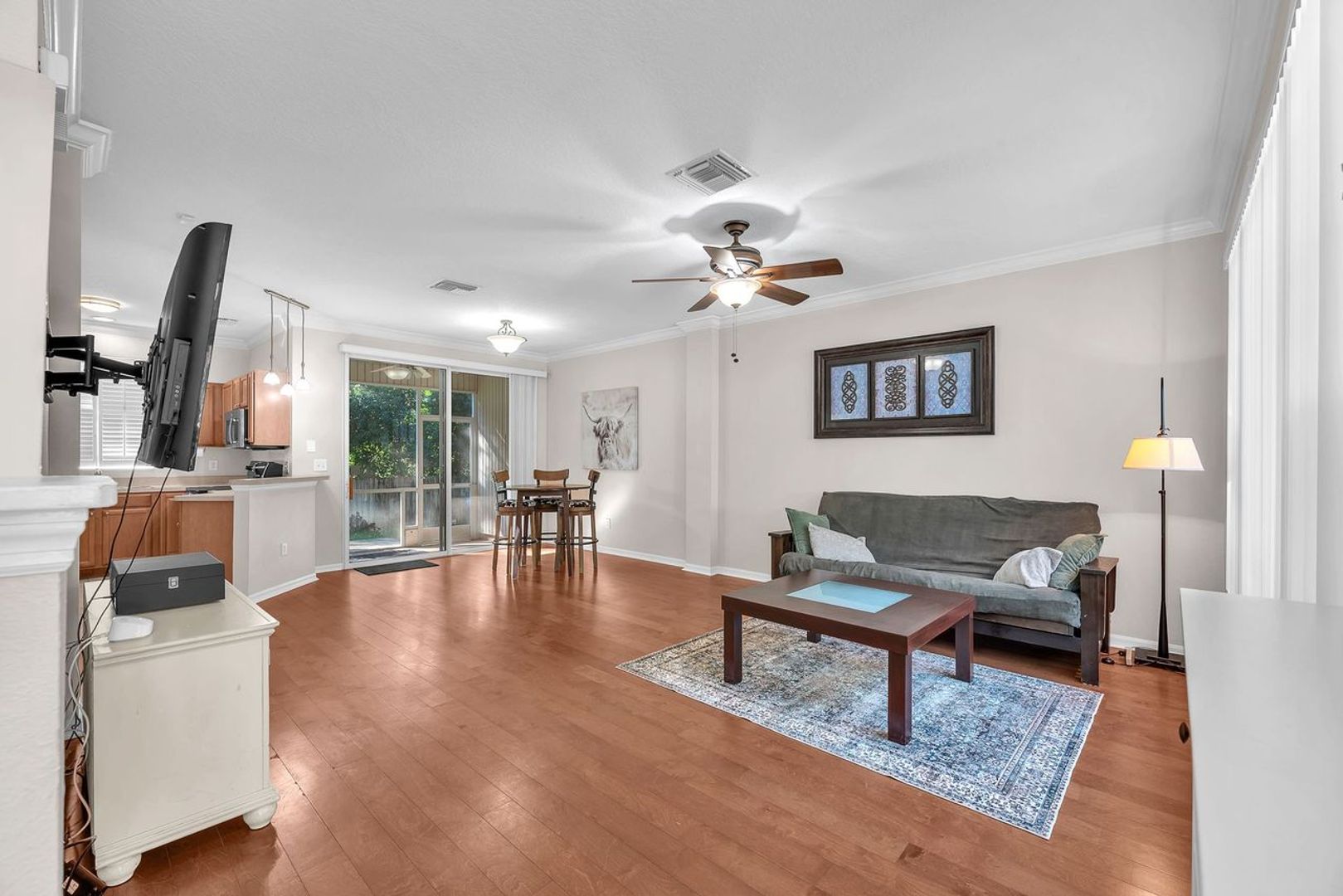 Contact Gigi Garrett at 813-334-2620 for information about this rental. Beautifully Updated Townhome in Oak Valley! Nestled among majestic oak trees in the quiet and desirable community of Oak Valley, this elegant 2-bedroom, 1.5-bath townhome offers comfort, style, and convenience in the heart of Valrico. Step inside to discover a home that has been lovingly maintained and filled with thoughtful upgrades! Enjoy gorgeous hardwood floors, including the stairs, custom blinds, ceiling fans in every room, fresh paint, and elegant crown molding that adds a touch of sophistication to every space. The open-concept main floor offers a bright and spacious kitchen, dining, and living area with a large picture window and sliding doors leading to a screened patio overlooking peaceful greenspace and wooded views — no backyard neighbors! A convenient powder room and ample storage complete the first floor. Upstairs, you’ll find the primary bedroom featuring a walk-in closet with a custom closet organizer. Another comfortable bedroom, a shared full bath, and a washer/dryer closet for easy laundry access round out the 2nd floor of this townhouse. Perfectly situated near the community pool and tranquil greenspaces, this townhome invites you to relax and enjoy a low-maintenance lifestyle. Your monthly rental includes water! Plus, you’re just minutes from SR 60, offering endless options for shopping, dining, and entertainment. Deposit required upon approval. There is a one time $125 Tenant Processing Fee due at move in along with rent. Schedule your private tour today!